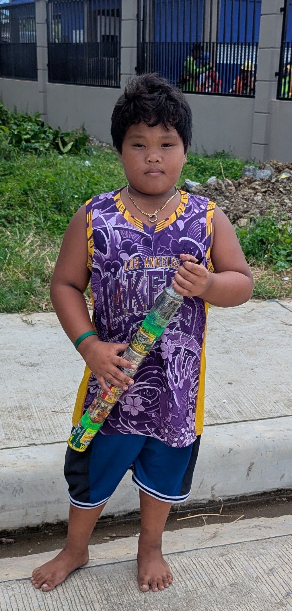 Two children emerge from the neighborhood of houseboats and shanties, a boy and a girl, in uniforms that indicate their parents can afford to send them to school. Other children form groups for like-minded play, all day. They are inventive. A ‘gun’ made of discarded soda cans and a plastic bottle produces a shot that can't be distinguished from the real thing. They understand about survival in a police state.
