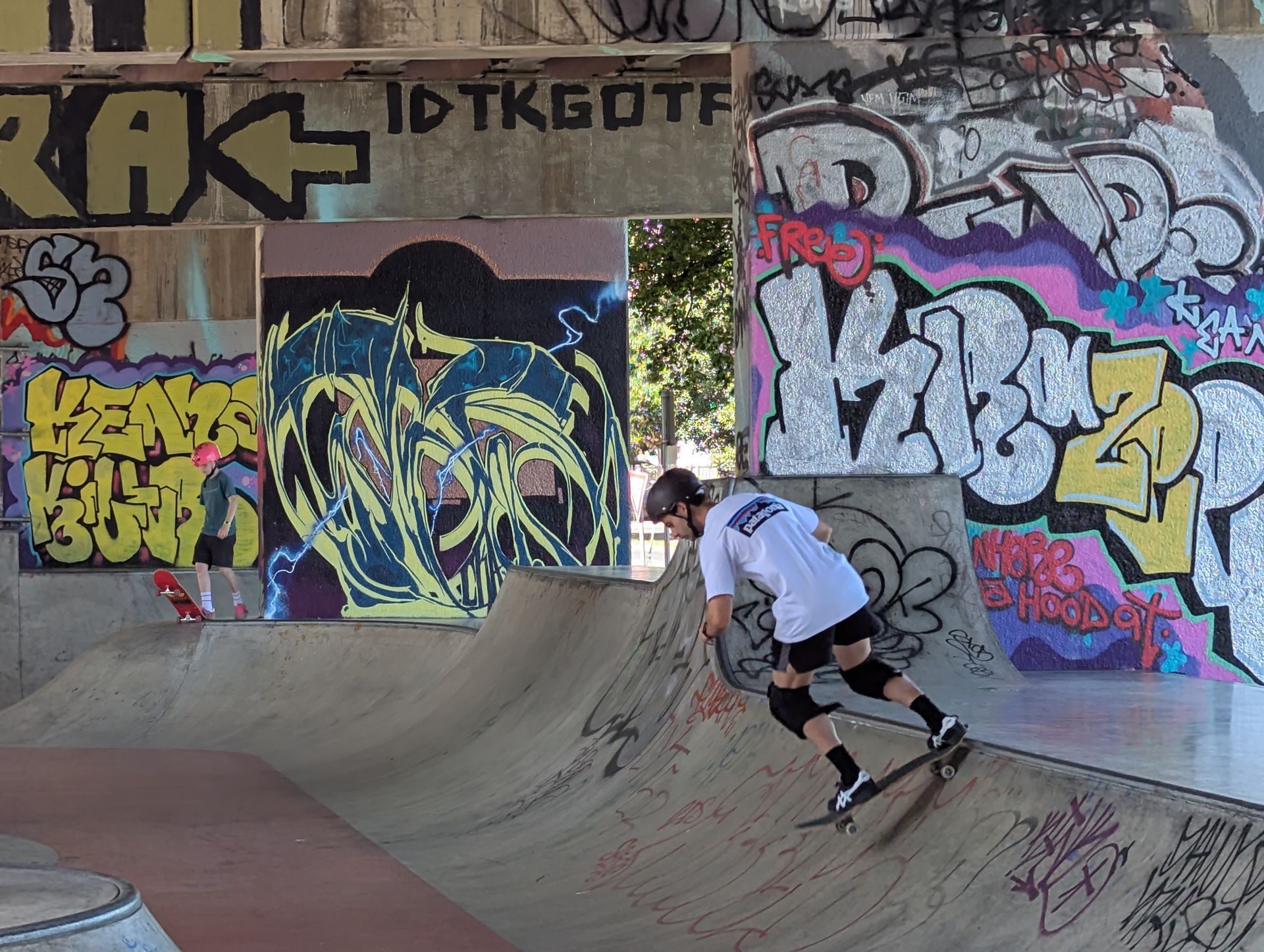 It is the weekend and families are out walking and biking. We find a trail next to the trolley line that bisects a large neighborhood.