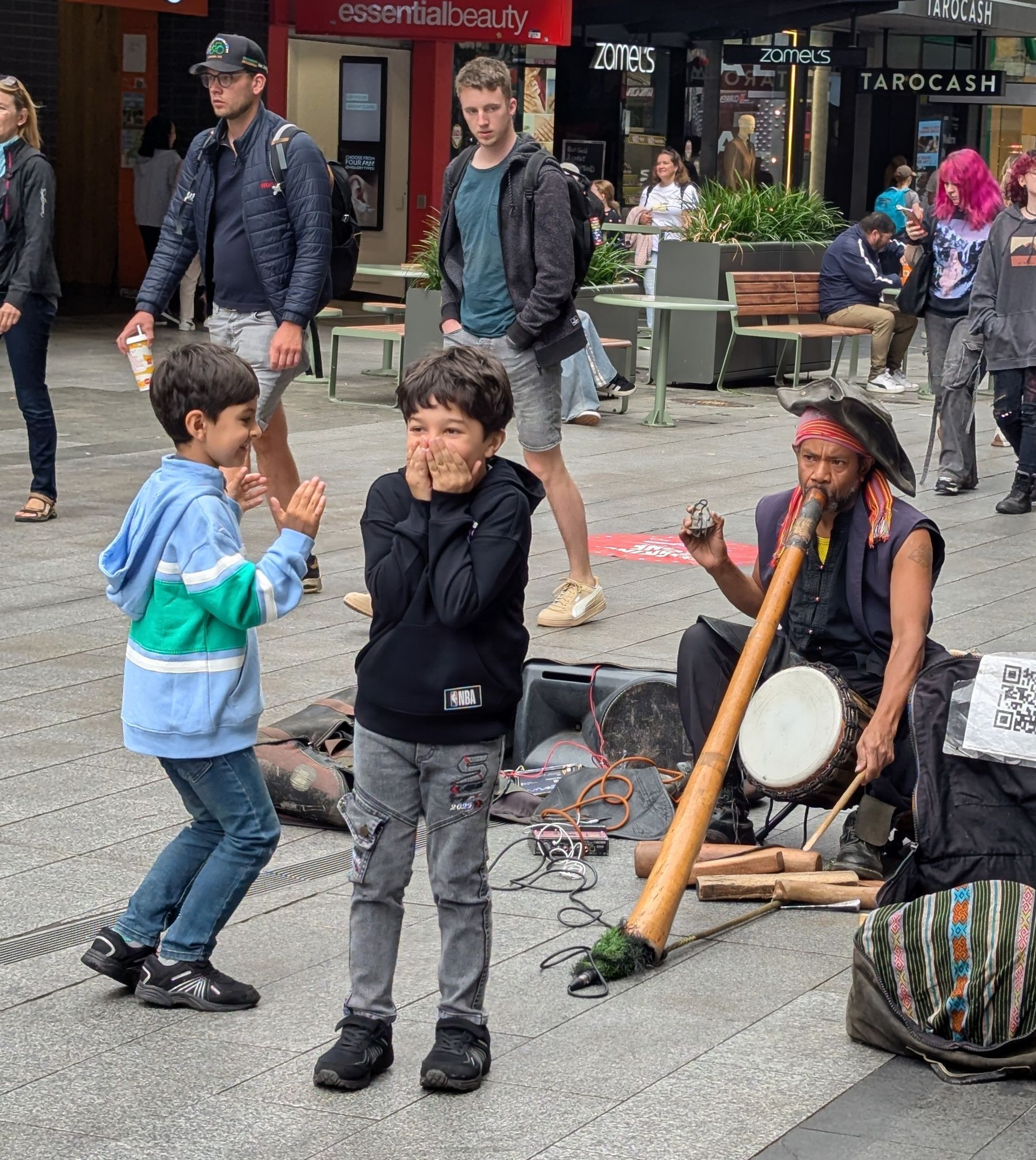 It proves to be an excellent walk with native trees and shrubs on both sides and occasional small parks. Jeff wants to find a hardware store. So I look up the nearest one to the port and find it's only a mile and a half away. He wants to buy an electric drill and some socket wrenches. We were not allowed to bring tools onboard and this is a constant source of frustration for Jeff because there are improvements he wants to make in our cabin. He recently got permission to bring tools aboard. We found the store and it is just like the large home improvement stores at home. Jeff finds everything he needs and we walk back to the ship. A day's adventure. Finding anything is a huge accomplishment. Every port is new and has to be researched. On another day we took the same trail into South Melbourne, a long walking mall of shops and restaurants. We found several thrift shops and were both able to increase our wardrobes.
