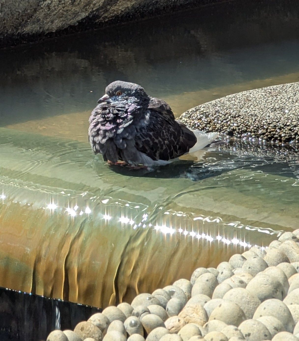 These are mostly sea gulls, sparrows and pidgins. They have adapted to the city knowing that there is always a human, somewhere, eating. Bits of food are dropped from an outdoor meal, or when a knuckle of bread is thrown to them, the sharp-eyed gulls call, then gracefully stoop their perfect curve of flight to scoop them up. The accuracy and beauty of these movements are repeated over and over as more and more birds call out and arrive, their wings overlapping, they argue and peck a crust to bits. Sparrows, modest explorers of the ground; dart and peck, brave and tireless, while peeping encouragement to each other. At the end of the day they gather in a shrub to gossip about the day, then fall asleep. Pidgins are philosophers. They have seen it all, know better than to expect permanence, they coo soothingly, move unhurriedly, fly like they invented it and it's no big deal and they don't have to show off. They do not depend on your generosity, but accept it, forming soft gatherings, sharing unhurriedly, their iridescent feathers sparking in the sun.