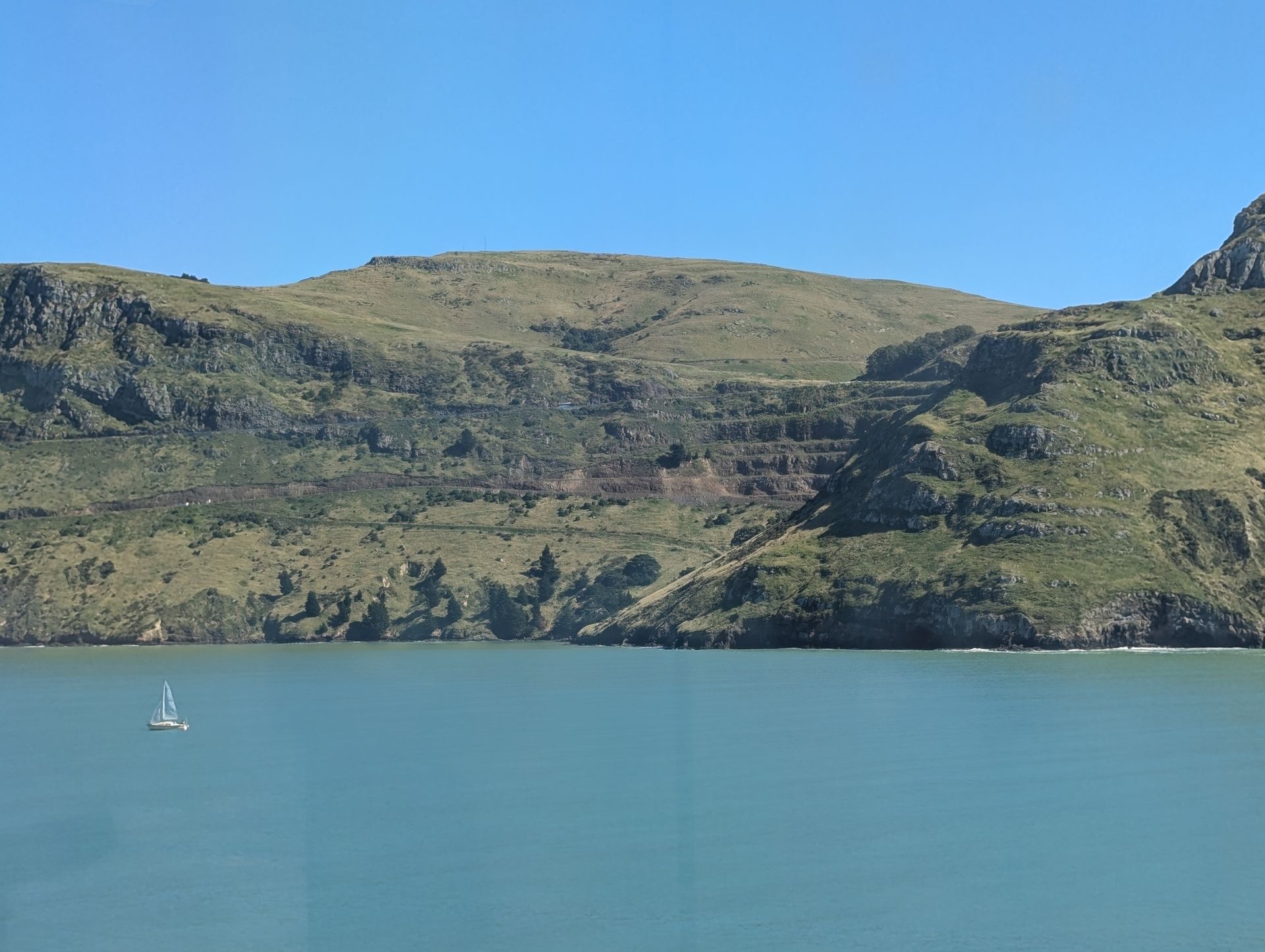 Our final port is Port Chalmers. The harbor is long, beautiful and edged with the supine, undulating flesh of the grey greenish hills.