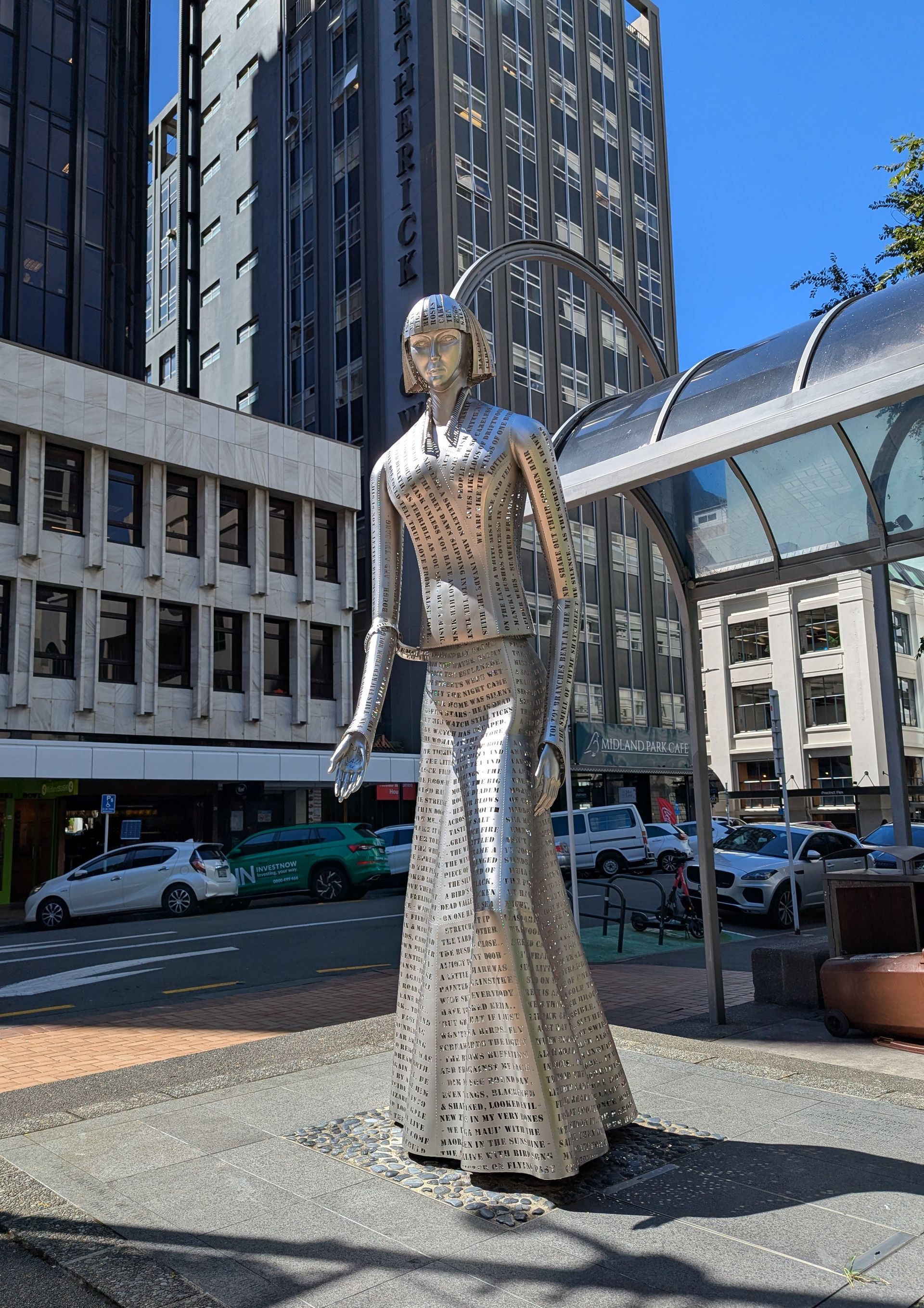We come alongside the dock, the lines are thrown and secured. There is a shuttle provided to take us downtown. We step off the shuttle into the vertical world of another Big City. This is a shock after 5 days on the water with nothing in sight. The buildings of Wellington are a mix of historic and modern. An interesting study for an architect. Again, the avenues of expensive restaurants and high end clothing stores, reaching in every direction. Here and there are sculptures, some contemporary and others, horses and riders of the past, on tall pinnacles.